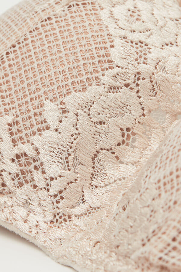 giorgia balconette-bh med bøyle og kopper med gradert polstring som skaper en effekt av ett størrelse større volum. den er laget av sofistikert og elegant stretchblonder med enten tone-i-tone eller kontrastfarget blomsterbroderi, avhengig av hvilken versjon som presenteres. Den dype V-halsen med bølgekant fremhever dekolletéen og gjør den til den ideelle BH-en for deg som ønsker en romantisk, men sensuell stil.