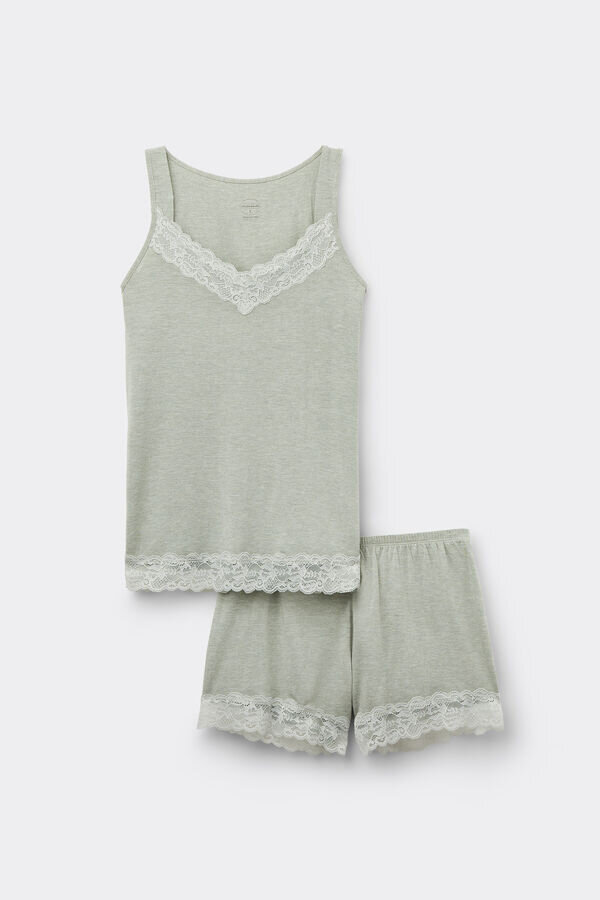 kort pyjamas med tank top i myk modal med romantisk blonderkant.