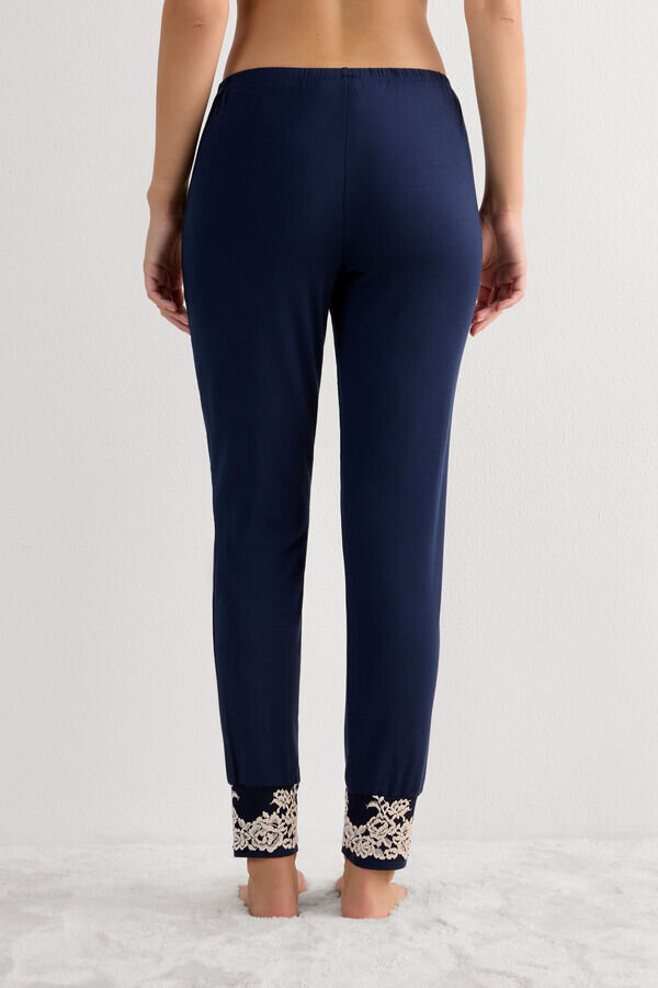 modalbukse i full lengde med brede mansjetter pyntet med en tofarget blonderruff. normal passform.