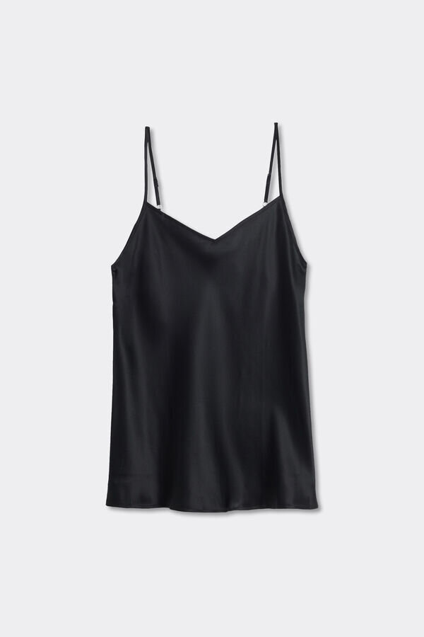 top i silkesatin med V-hals foran og bak. justerbare tynne stropper.