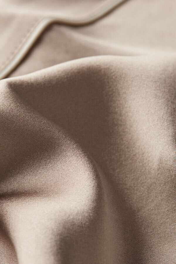lette shorts i stretch-silkesatin med elegant piping i kanten, enten i samme farge eller i en kontrastfarge, avhengig av valgt farge.
