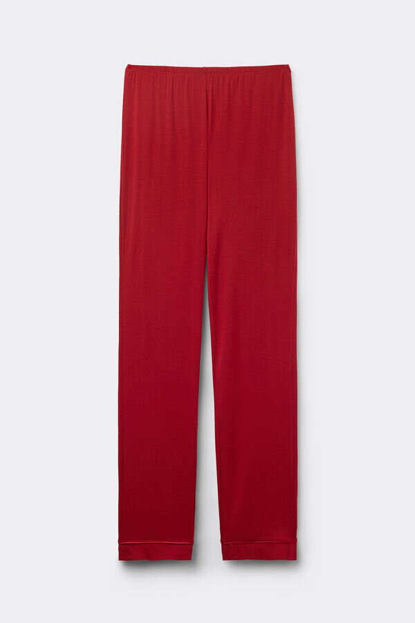 lange bukser i mikromodal. med kontrastdetaljer i satengkant.