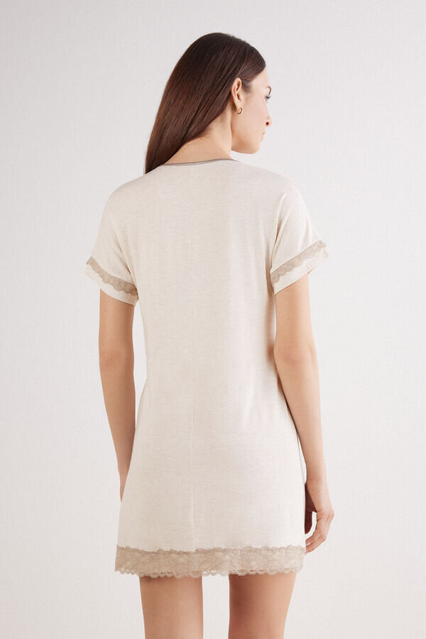 nattkjole med rund hals og korte ermer i myk, lett stretchmodaljersey. plagget er pyntet med blonder på ermene og i kanten. normal passform.