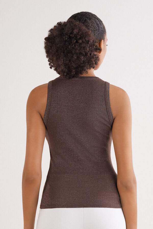 ribbet bomullslamé tank top med rund hals.