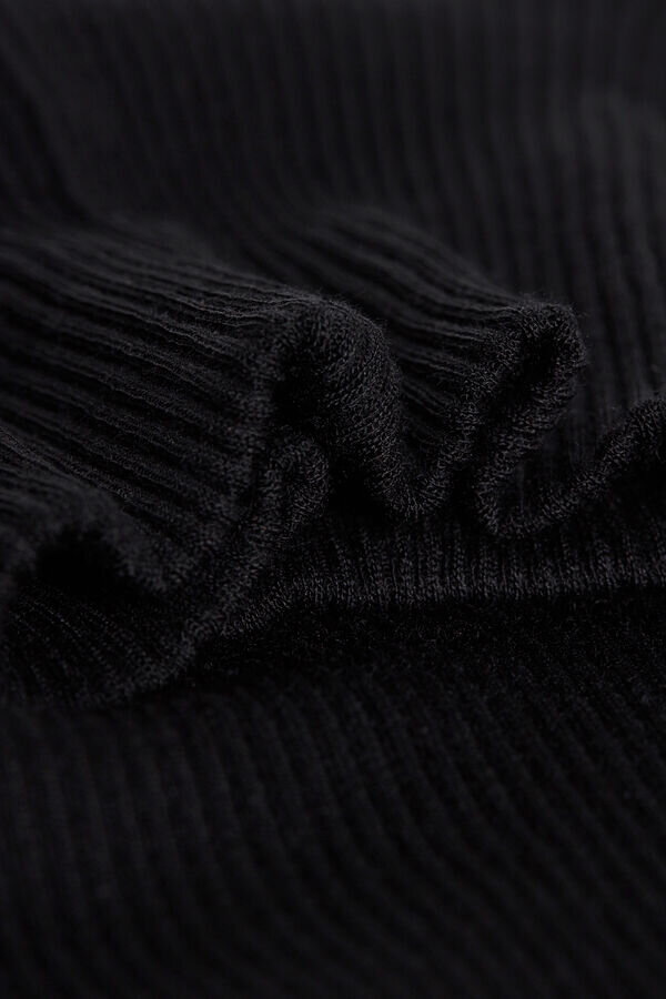 langermet topp med høy hals laget av en blanding av ull og silke.
