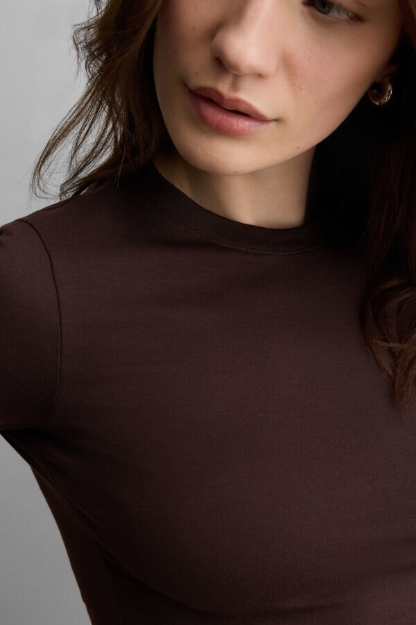 kortærmet topp med rund hals i stretch superior bomull. en enkel og behagelig topp, ideell å bruke til enhver anledning, enten som undertøy eller alene for en uformell look.