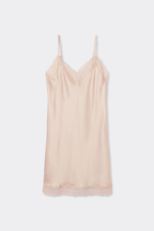 omslutt deg med den tidløse elegansen til vår silkekjole med blonder, laget for å løfte loungewearen din med raffinert sofistikering. denne kjolen med blonder kombinerer luksusen av ren silke med delikat blonder, og skaper et look som er både klassisk og uendelig stilig. Denne tidløse underkjolen er perfekt for de øyeblikkene du ønsker å føle deg luksuriøs, men likevel komfortabel. Denne underkjolen er laget av førsteklasses, ultraglatt silke og har en naturlig myk følelse som faller vakkert mot huden. Med sitt slitesterke og praktiske design er dette plagget en perfekt blanding av italiensk eleganse og funksjonell mote. Invester i dette raffinerte basisplagget, et ekte uttrykk for stil som er perfekt å unne seg hele året.