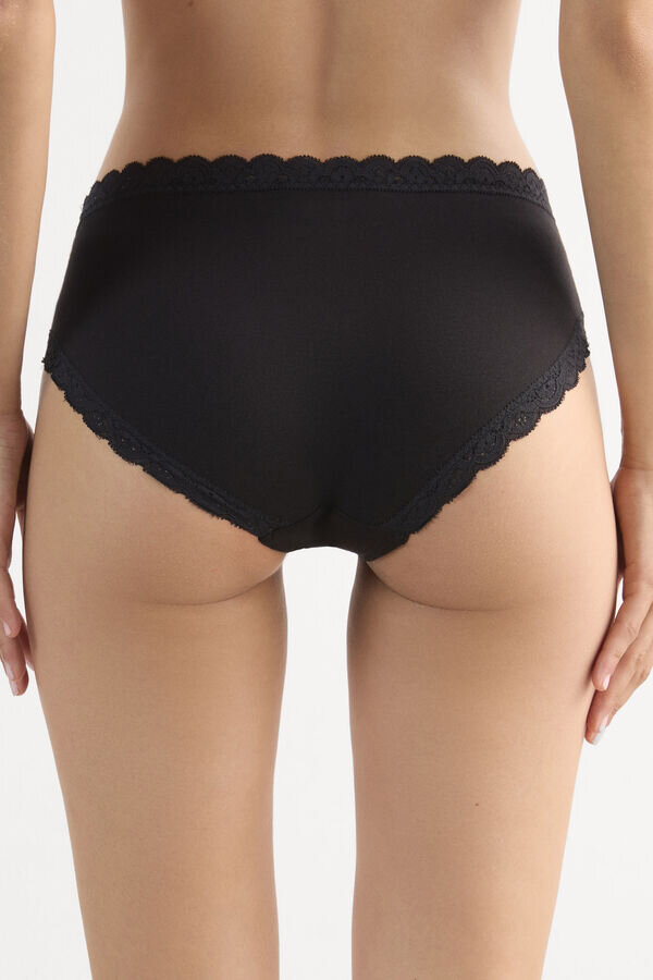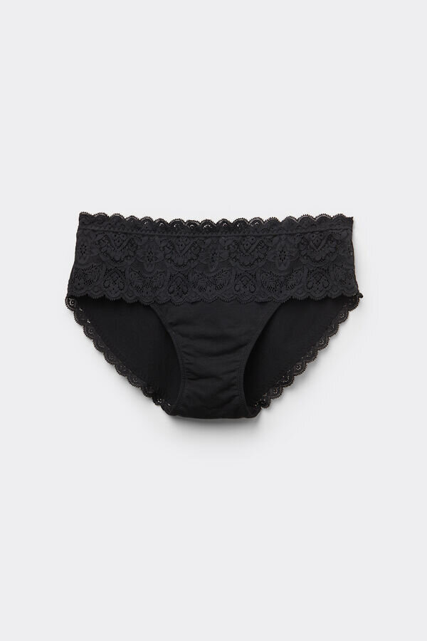opplev komfort med den tettsittende passformen til disse høye bomulls- og blonderundertøyene. Den høye modellen sitter over hoftene, mens bakpanelet i ren bomull gir maksimal beskyttelse og trygghet. Disse bomullstrusene med høy midje har en bølget blonderkant som gir en subtil femininitet, og et blonderfrontpanel som gir en sjenert appell, med et bredt bånd i et kunstnerisk design. Du trenger ikke velge mellom komfort, trygghet og utseende! Disse høye trusene i blonder er det perfekte valget for aktive dager hvor du ønsker maksimal dekning, men samtidig ønsker attraktivt, sensuelt undertøy. Velg mellom et bredt utvalg av farger som passer til enhver stemning, og kombiner med en matchende BH for et attraktivt sett.