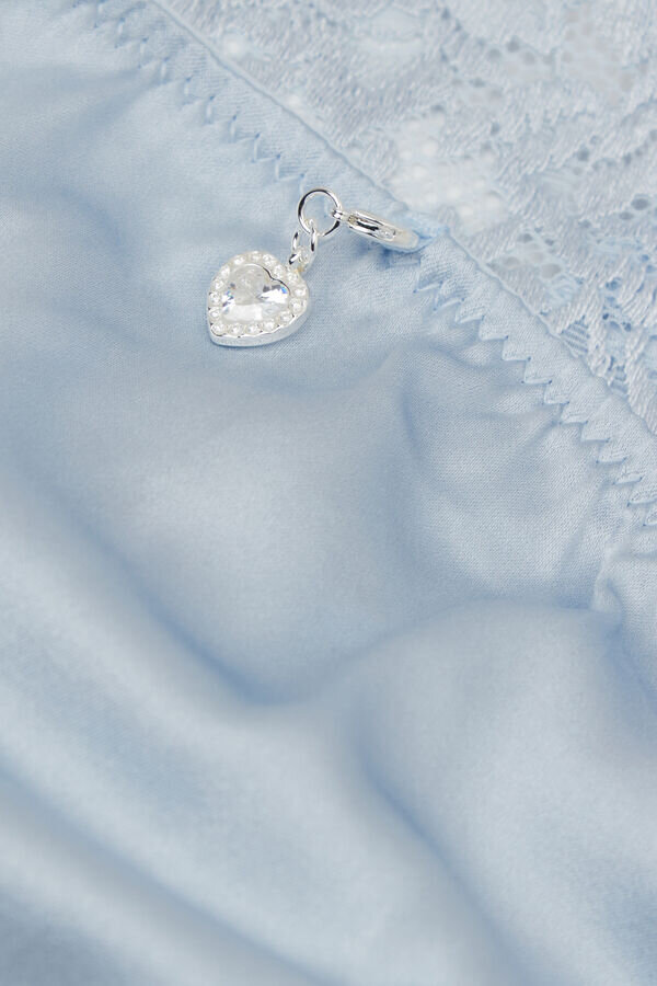 truse i raffinert stretchblonder med blomsterbroderi og bakside i elegant stretchsilkesatin. nydelig hjerteformet charm med rhinestone.