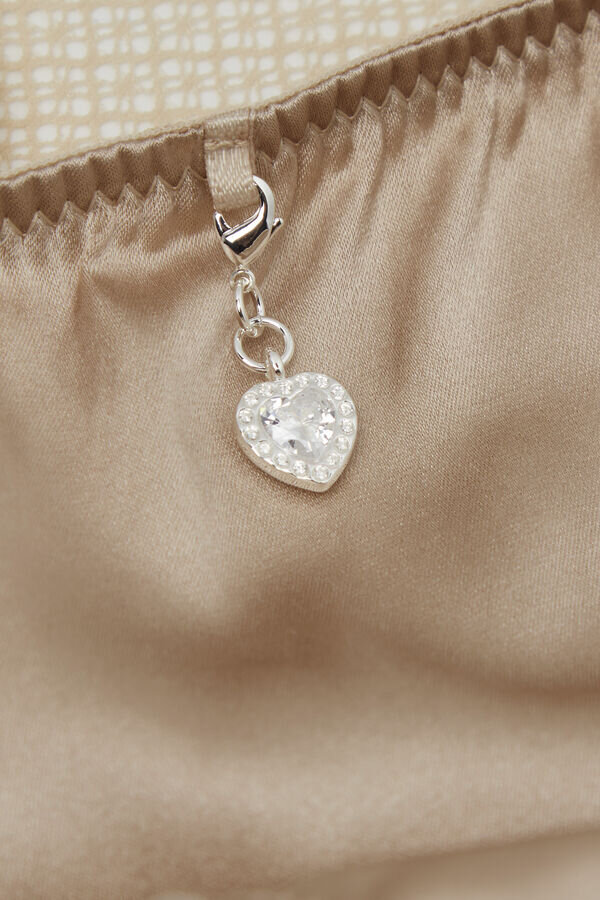 truse i raffinert stretchblonder med blomsterbroderi og bakside i elegant stretchsilkesatin. nydelig hjerteformet charm med rhinestone.