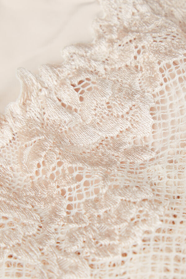 Brazilian hipster-bh med høy midje, laget av blonder med volanger og en myk mikrofiberdel nederst. avhengig av valgt farge kan blonderne være i kontrastfarge eller tone-i-tone. høyt kutt på sidene. innvendig kile i 100 % bomull.
