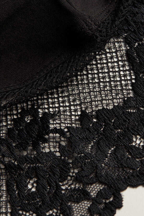 modal chemise med tynne stropper pyntet med blonder ved halsen og kanten. avhengig av valgt farge kan blonder være i kontrastfarge eller tone-i-tone. ideell å bruke under tynne klær eller som nattkjole. tettsittende passform.