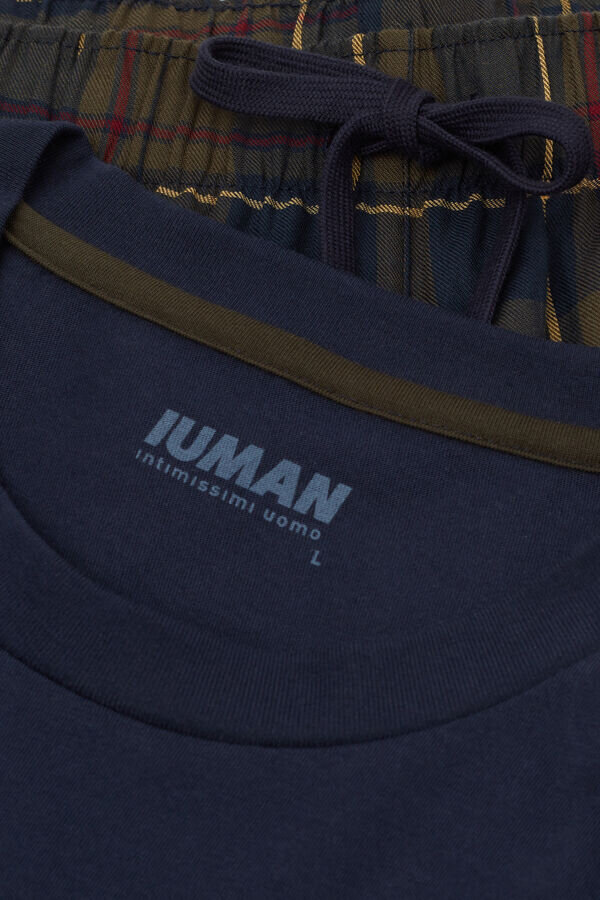 kort pyjamas med myk, ensfarget bomullsjersey-skjorte med tartanmønster og lomme i flatvev. bomullsshorts med tartanmønster.