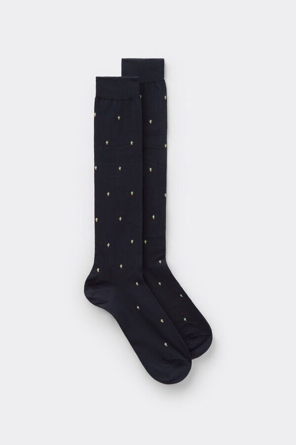 knestrømper for menn i bomull med forskjellige mønstre.