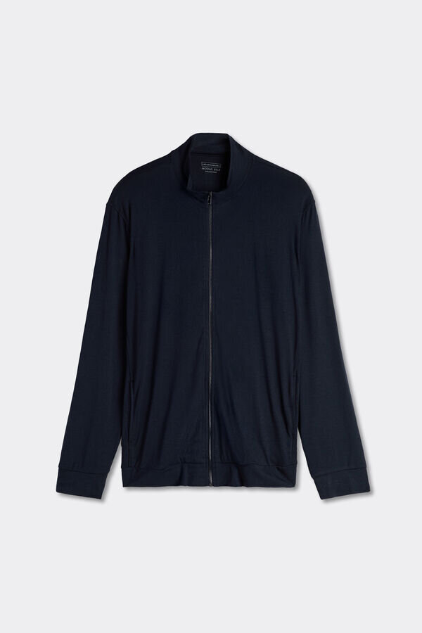 langermet sweatshirt for menn i silke og modal med glidelås foran og lommer.