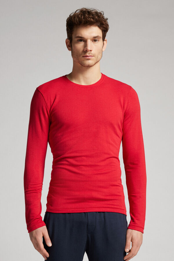 langermet topp med rund hals for menn i en blanding av modal og kashmir. utrolig myk og behagelig. modellen er 185 cm høy og bruker størrelse l. selges i intimissimi man-butikker.