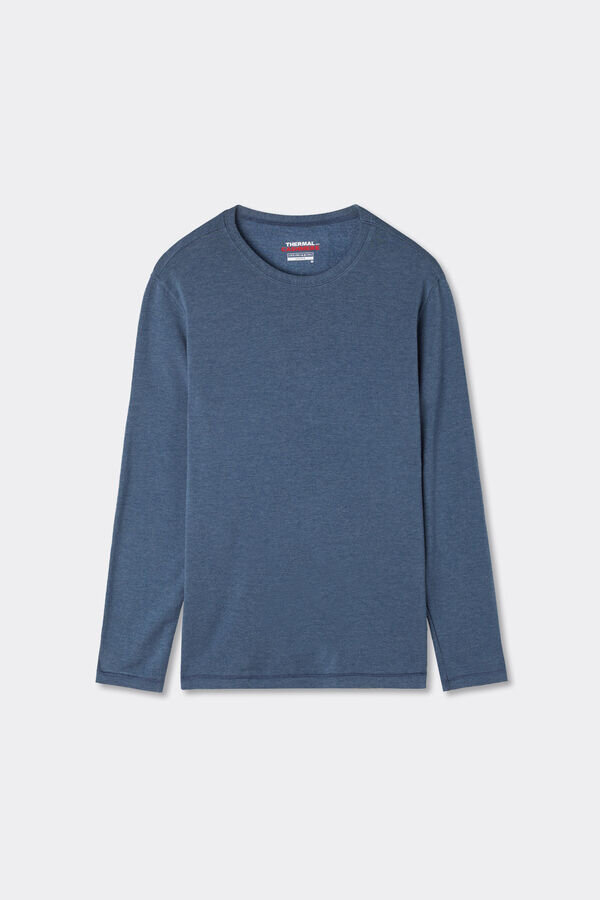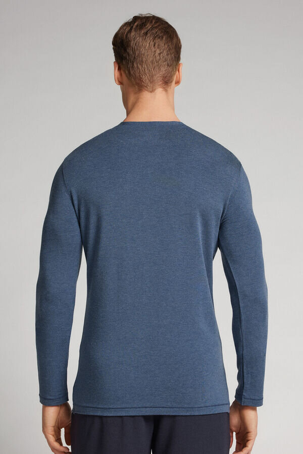langermet topp med rund hals for menn i en blanding av modal og kashmir. utrolig myk og behagelig. modellen er 185 cm høy og bruker størrelse l. selges i Intimissimi-butikker.