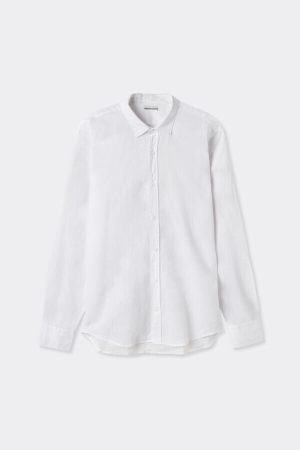 langermet skjorte i lin og bomull med krage og mansjetter. bokspliss på baksiden. normal passform.