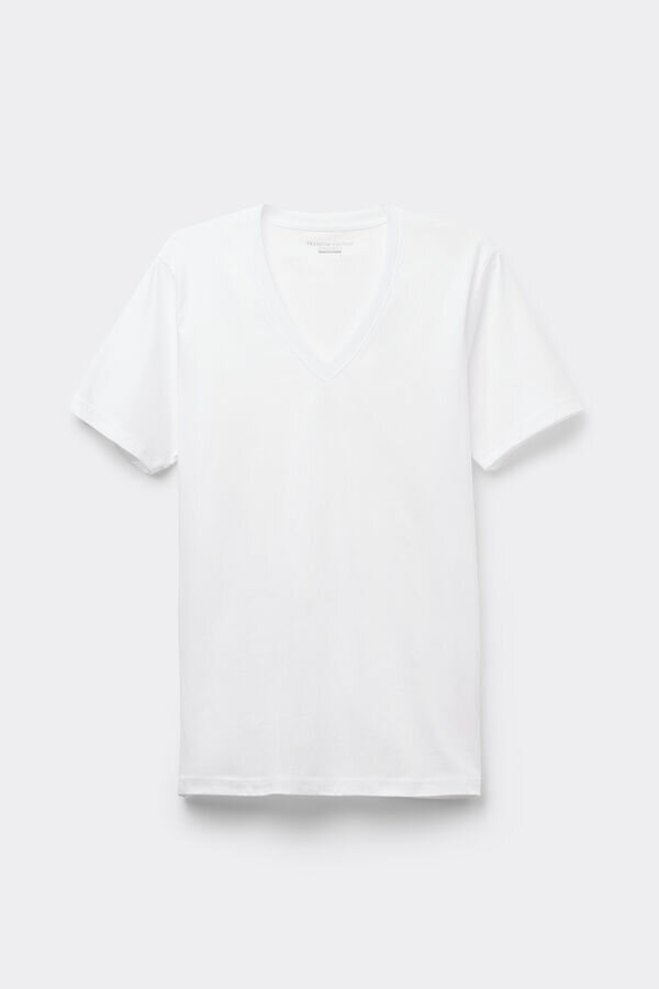 t-skjorte laget av fin premium mercerisert bomull. veldig behagelig og behagelig å ha på, den har myk, frisk og silkeaktig bomull. usynlig under en lett åpen skjorte. takket være sin elegante og raffinerte stil, er den perfekt å ha på under en jakke.